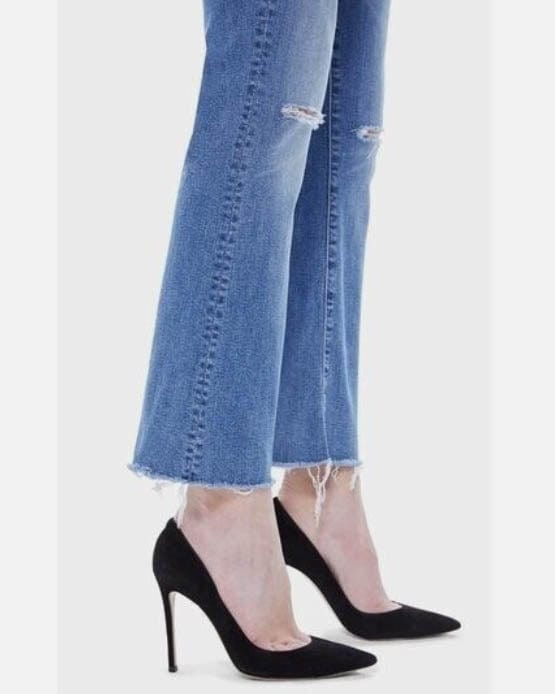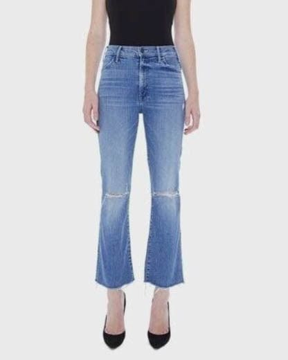 Mother "The Hustler Ankle Fray" Jeans in "Can't Stop Staring" with 5 pockets, zip fly, and